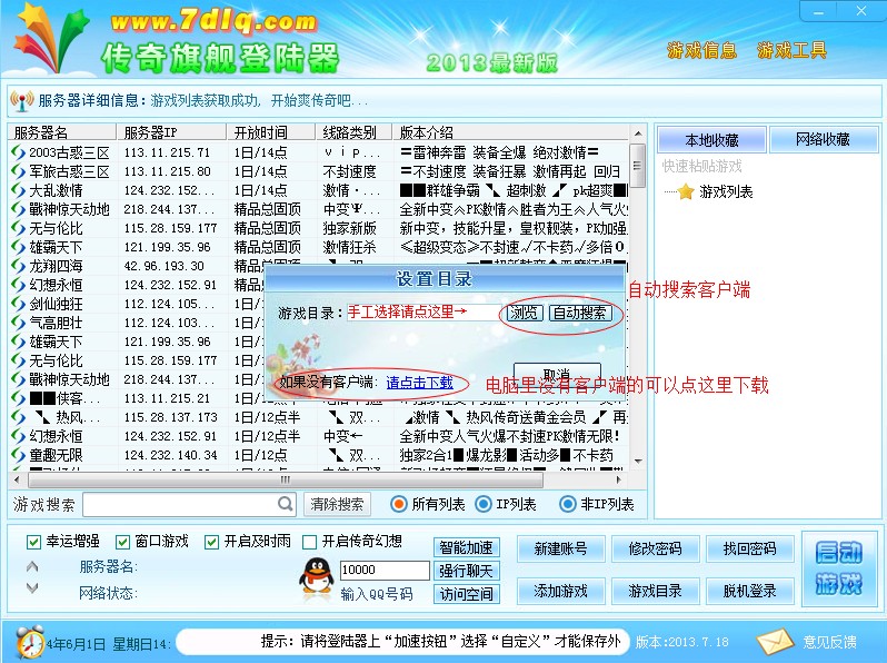 打开登陆器,选择传奇游戏所在目录,实在不会的就点自动搜索